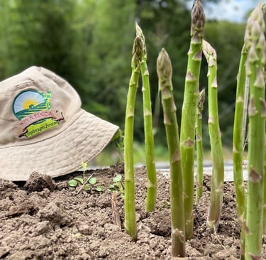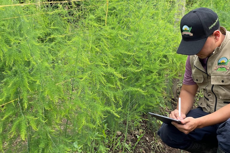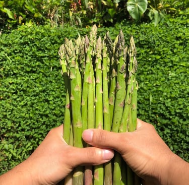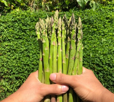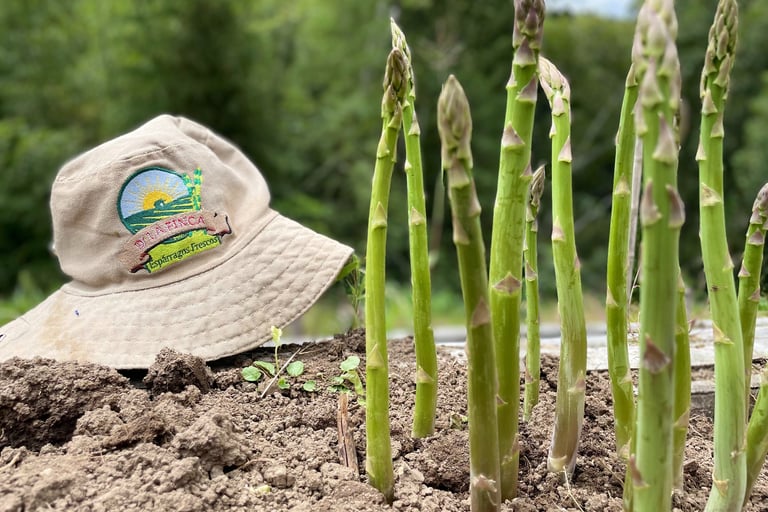 Espárragos y setas cultivados con técnicas sostenibles para preservar su frescura.